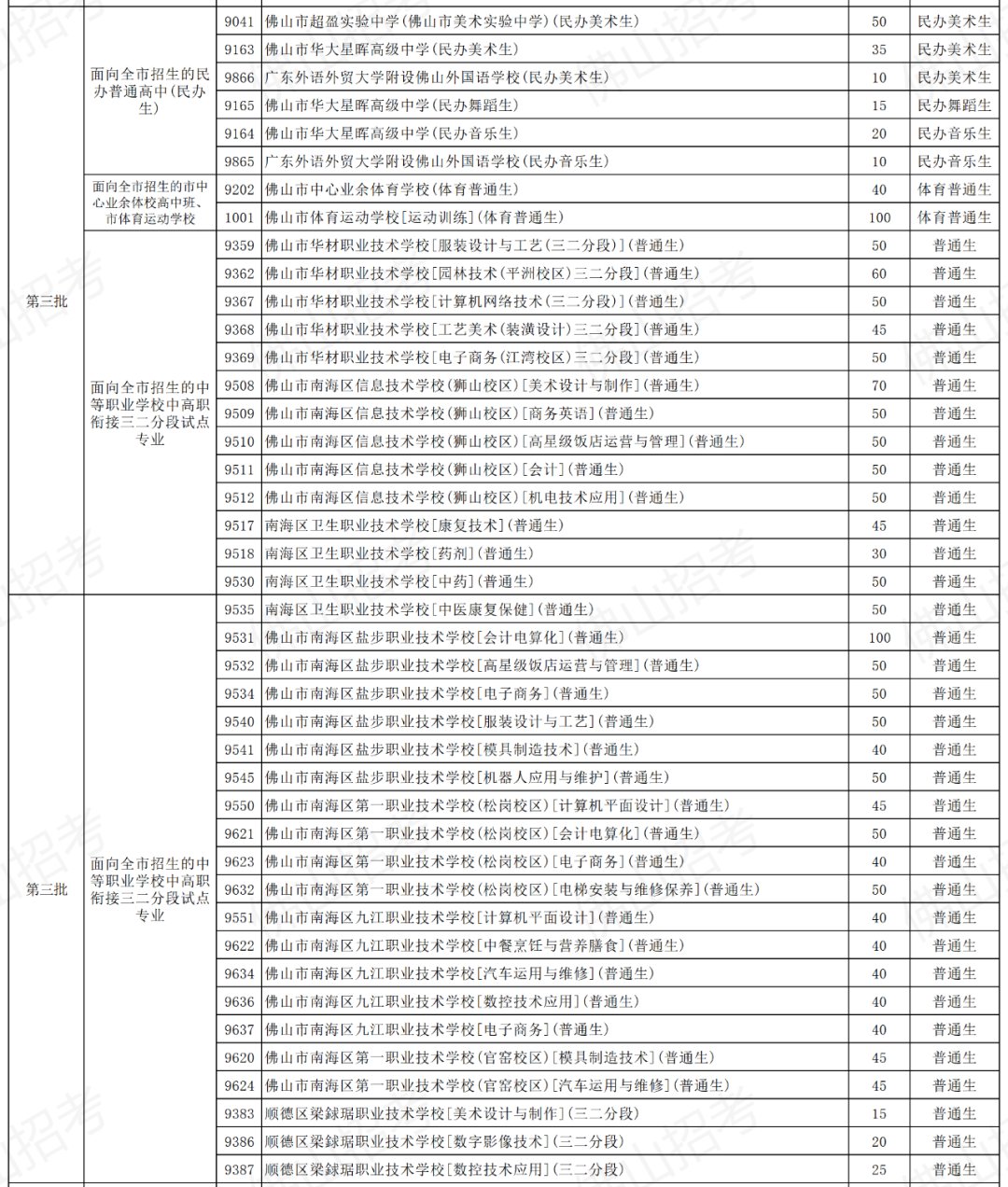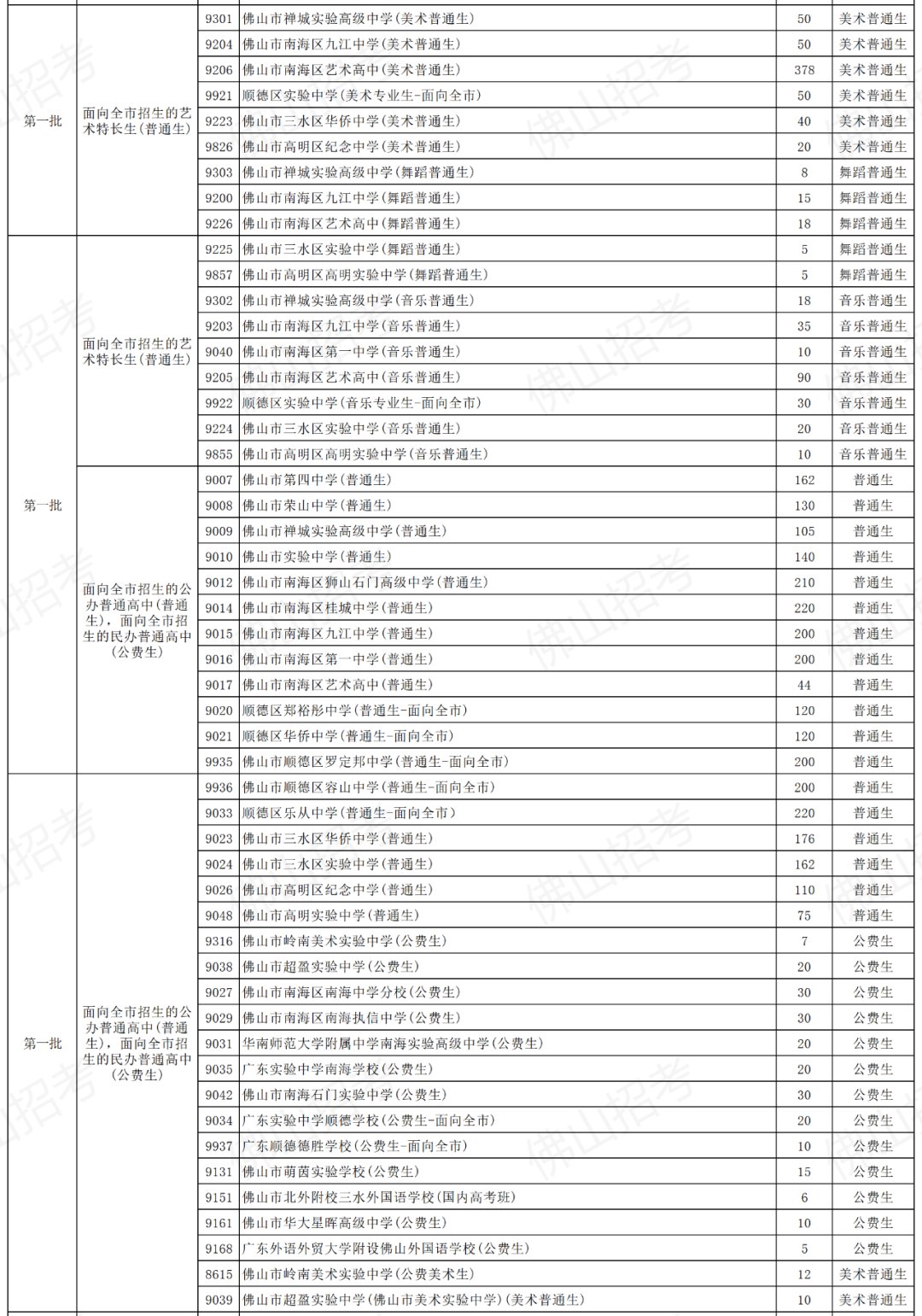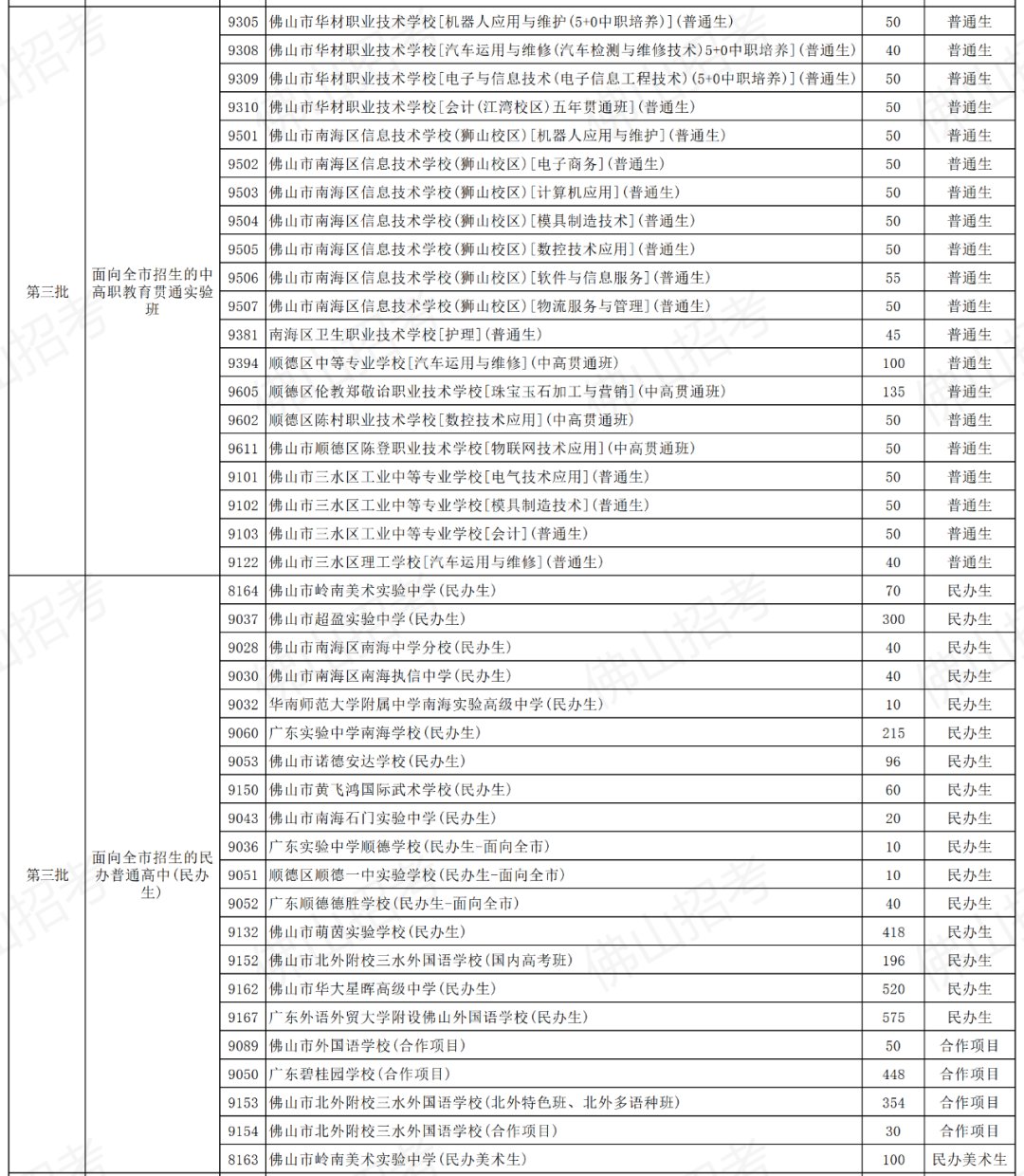 2020佛山高中阶段学校面向全市招生计划代码公布
