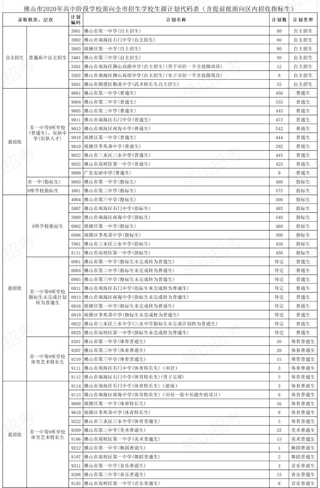 附件:佛山市2020年高中阶段学校面向全市招生学校生源计划代码表(含提前批面向区内招收指标生)