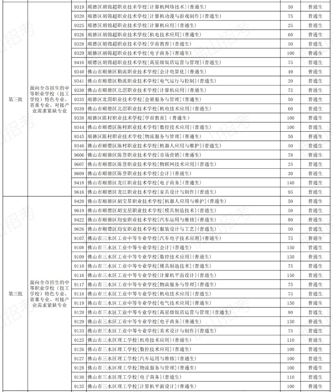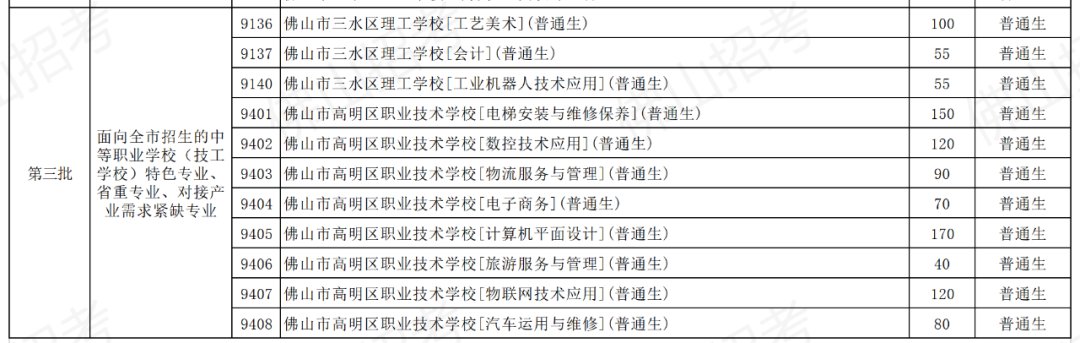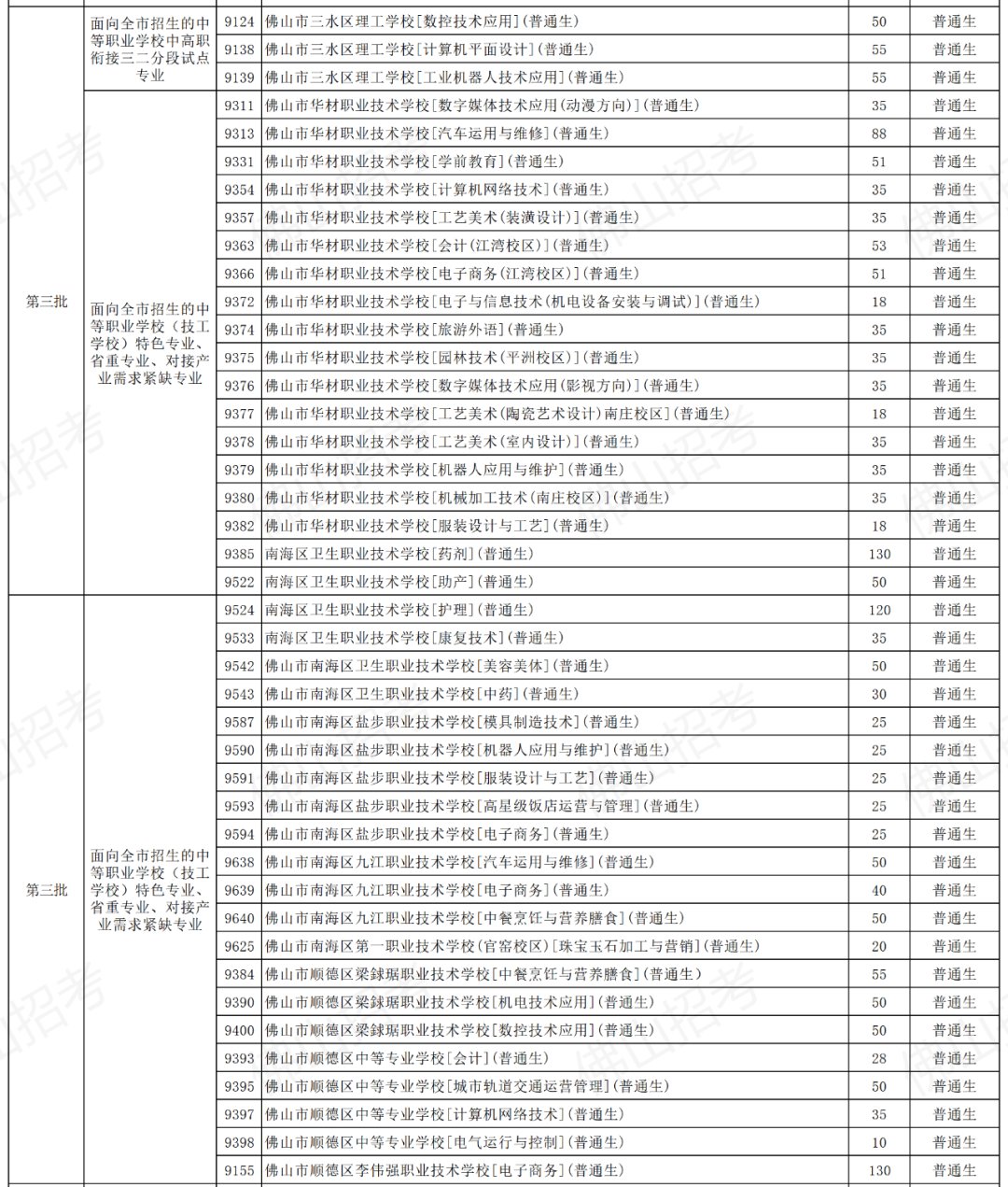 面向区内招生学校的招生计划代码由各区自行发布。省属及跨市招生中等职业学校招生计划代码、技工院校(学校)招生计划代码详见佛招委〔2020〕13号和佛人社〔2020〕29号。