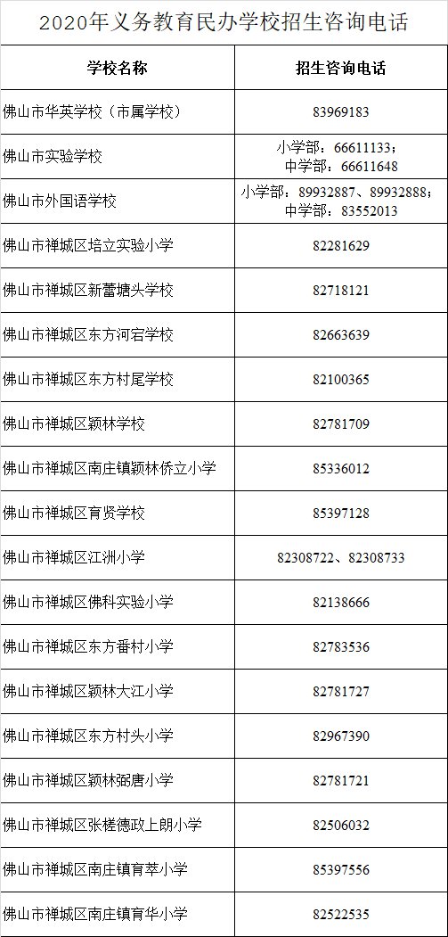 2020年禅城区民办中小学招生计划及咨询电话一览