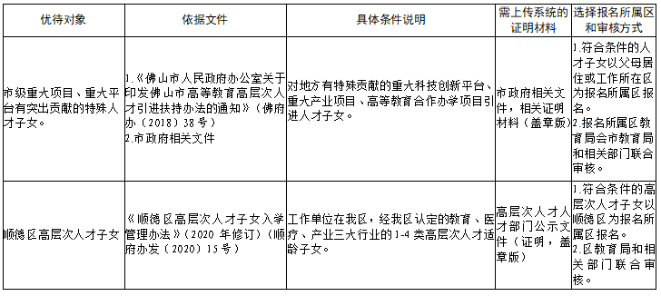 顺德区2022年民办义务教育学校政策性直招、特殊人才子女直招资格明细: