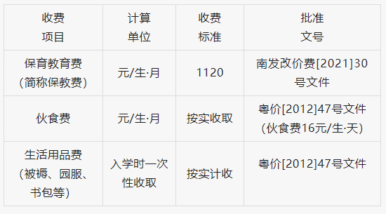 (四)收费标准:目前收费标准按照南发改价费[2021]30号文件执行,鉴于幼儿园2022年9月1日才开学,开学前收费标准如有调整则按南海区发展和改革局最新核定的标准执行。代收代支费按实收取。