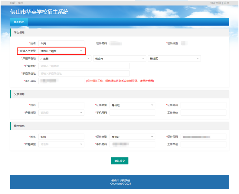 2022年佛山市华英学校报名操作指引(以电脑端为例)