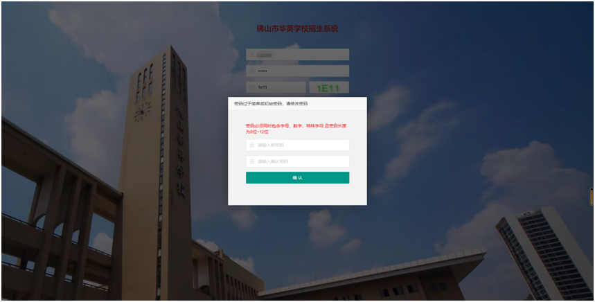 完成注册报名账号后,家长第一次登录系统会强制要求修改密码。