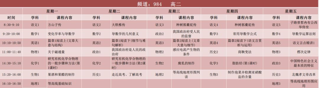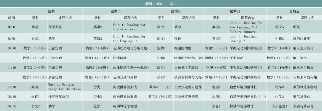 广东广电网络粤课堂高中课程表出炉啦!