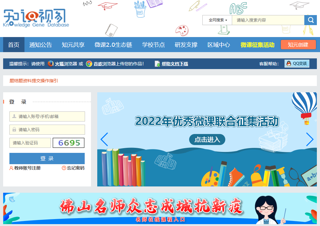 进入“知识视图”教学平台(http://www.zsgen.net),点击“佛山名师众志成城抗疫”可进入义务教育阶段和高中各年级专栏。