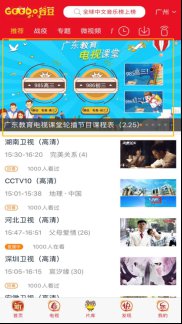 在“首页”-“推荐”中,选择横版推荐位的“广东教育电视课堂轮播节目课程表”,即可阅览对应直播频道的节目单。