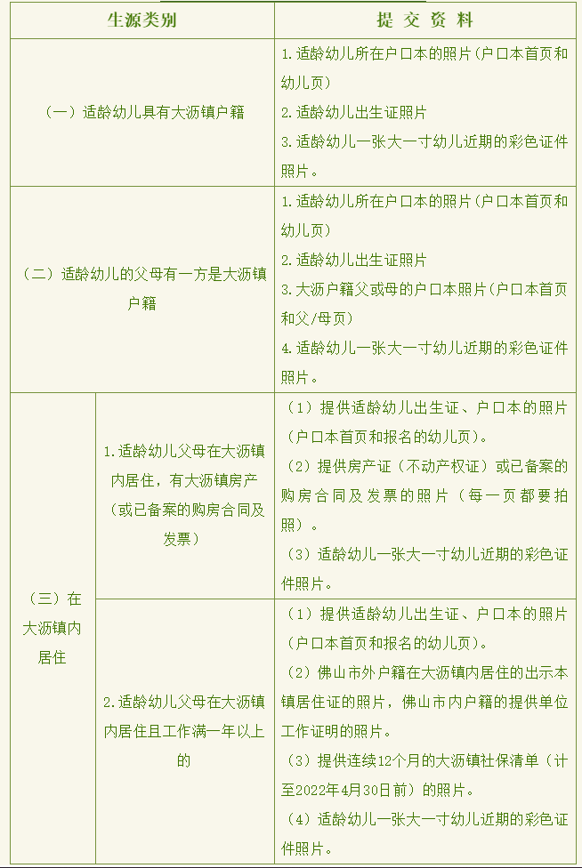 (3)适龄幼儿的父母在大沥镇内居住,满足下列条件之一:①有大沥镇房产(或已备案的购房合同及发票);②在大沥镇居住,已领居住证(佛山市内户籍的提供父母在大沥镇内工作单位证明),同时具备至少连续12个月的大沥镇社保清单(计至2022年4月30日前)。