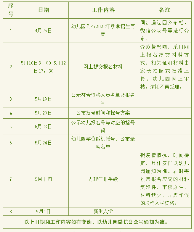 2.报名审核截止后,如报名人数少于可提供学位数,剩余学位由幼儿园根据实际情况将学位调到其他年级。