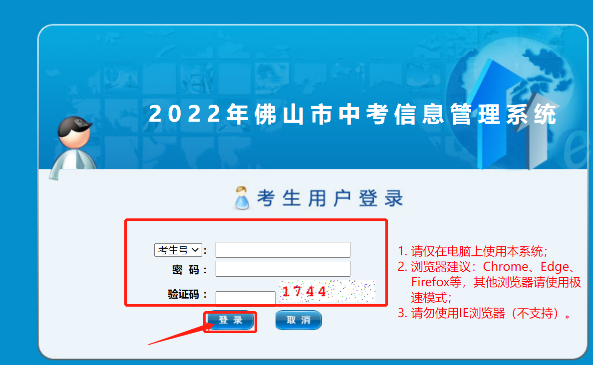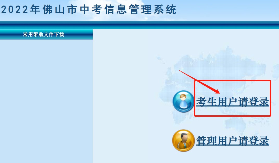 网上填报入口:凭账号及密码登录佛山市中考信息管理系统(http://zsks.edu.foshan.gov.cn)