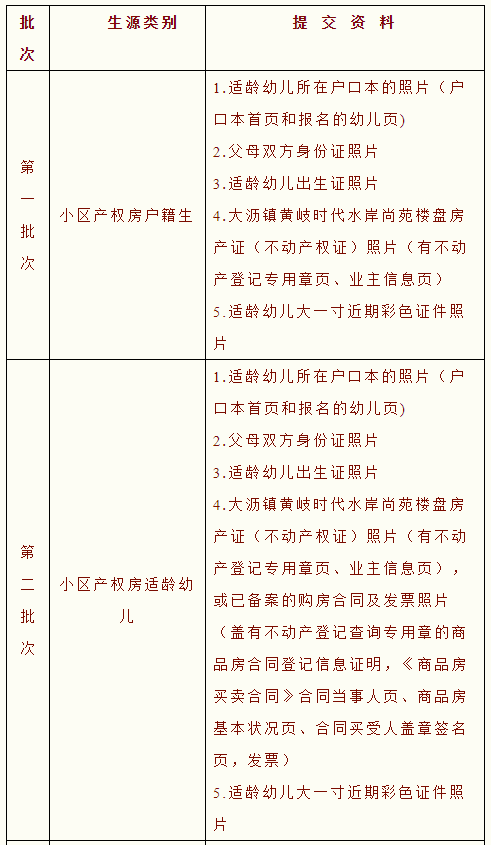 第一批次:房户一致的,即适龄幼儿的父母或法定监护人,拥有大沥镇黄岐时代水岸尚苑产权房【截止到2022年4月30日(含)已获得房产证(不动产权证)】且该幼儿户籍登记地址为大沥镇黄岐时代水岸尚苑(以户口本为准)。