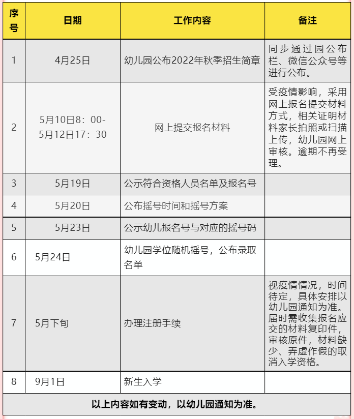 大沥盐步中心幼儿园招生工作日程表