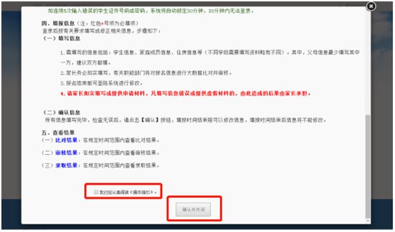 ④阅读后点击“确认并关闭”