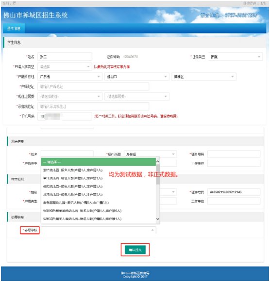 在“志愿学校”栏处,选择一所禅城区公办幼儿园(系统实时显示各所公办幼儿园报名人数),然后点击“确认提交”完成报名。