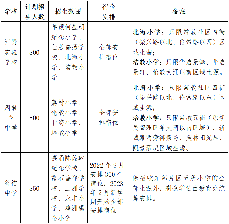根据伦教街道2022年公办初中学位规划情况及小学毕业生生源分布情况,各初中学校招生范围划分具体如下: