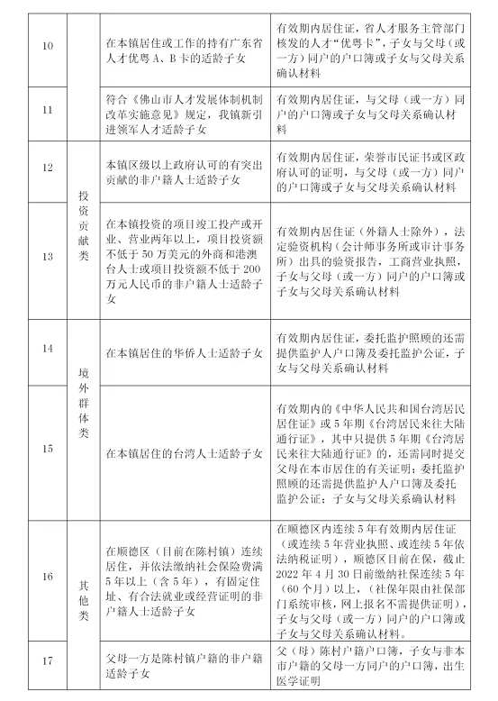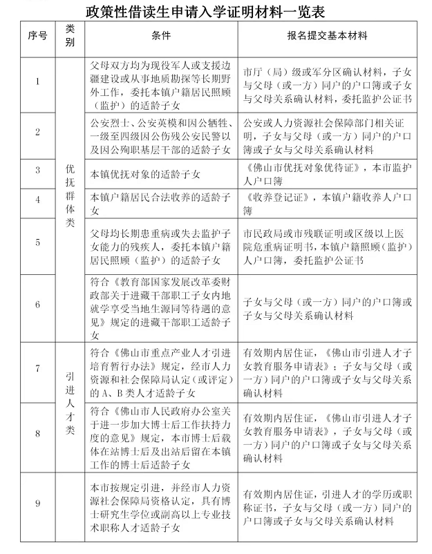 佛山顺德陈村镇初中政策性借读生申请入学证明材料一览表2022