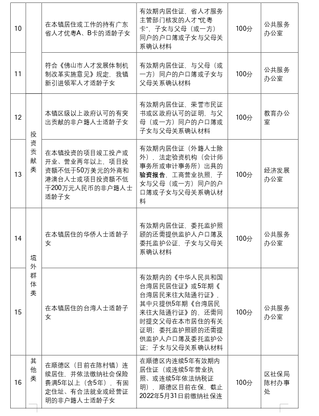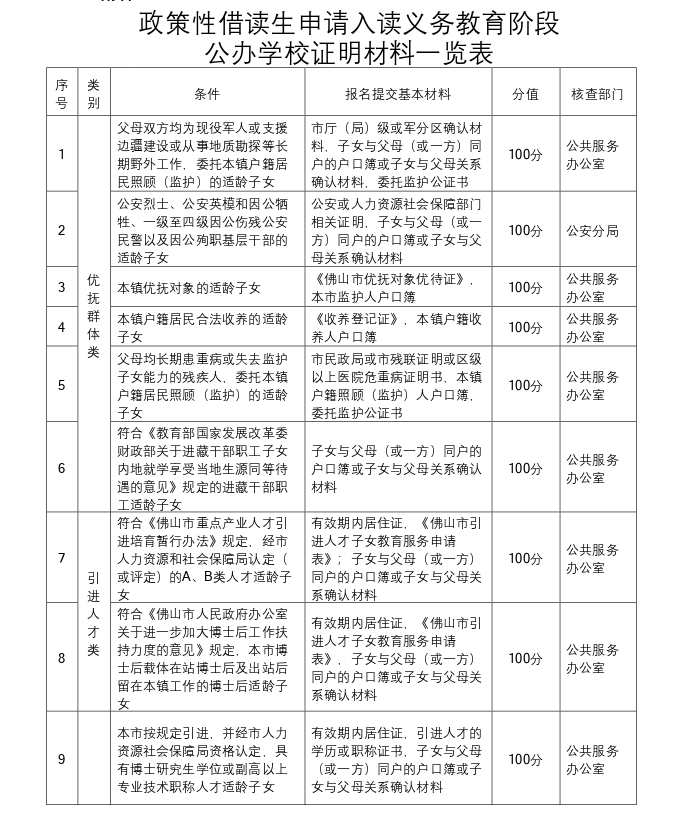 2022佛山陈村政策性借读生公办中小学入学申请证明材料一览表