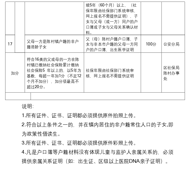 (2)父母一方陈村户籍的政策生;