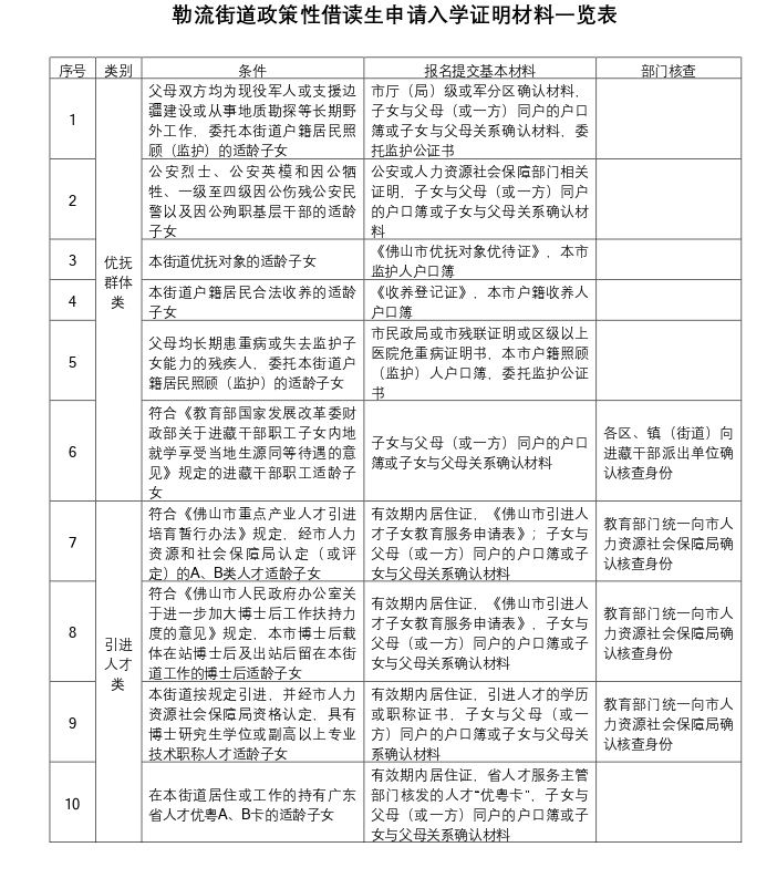 2022顺德勒流街道政策性借读生申请入学证明材料一览表
