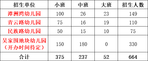 潭洲湾幼儿园、青云路幼儿园、民族路幼儿园、吴家围地块幼儿园(吴家围地块幼儿园暂未定开办时间,预计2022年年底前开办)