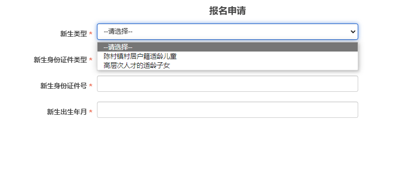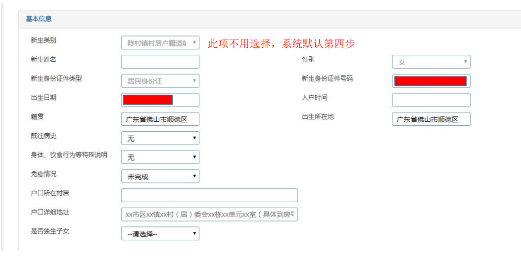 第四步:请选择新生的报名类型和填写新生基本信息
