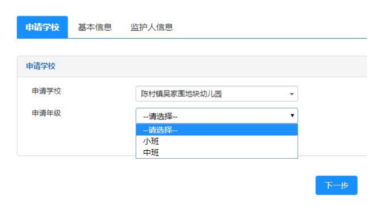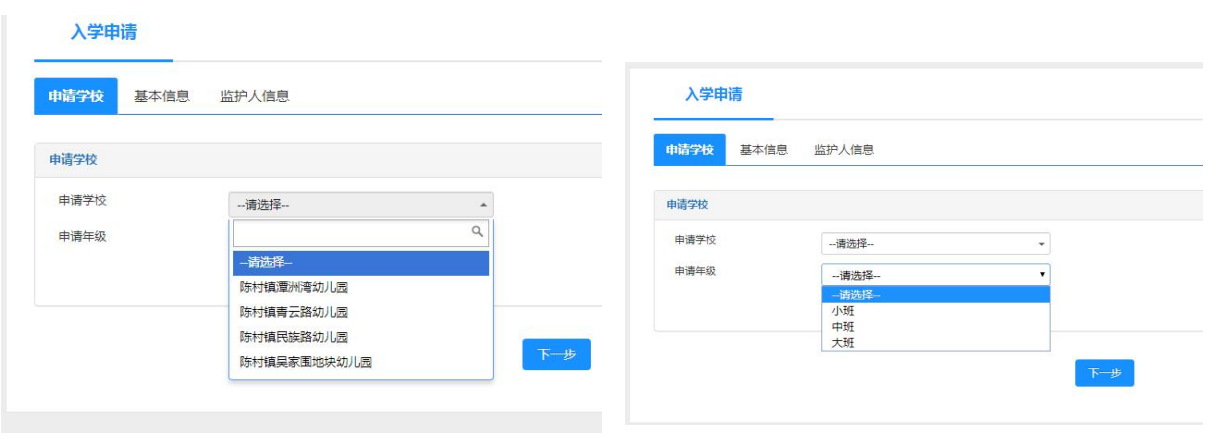 第五步:请选择想要就读的幼儿园和年级