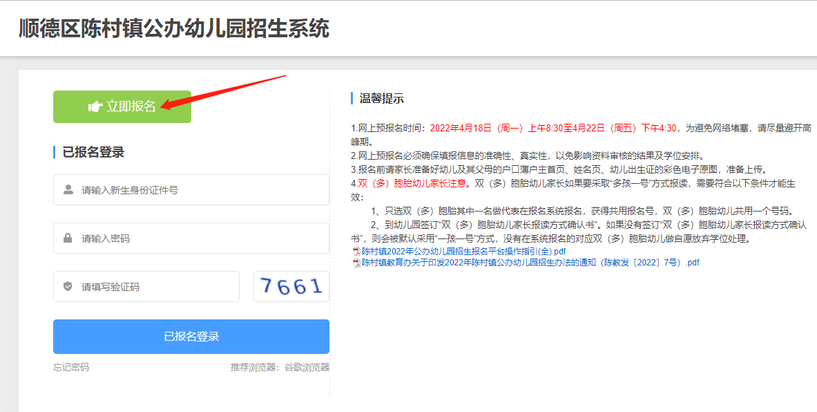陈村镇2022年公办幼儿园招生报名操作指引: