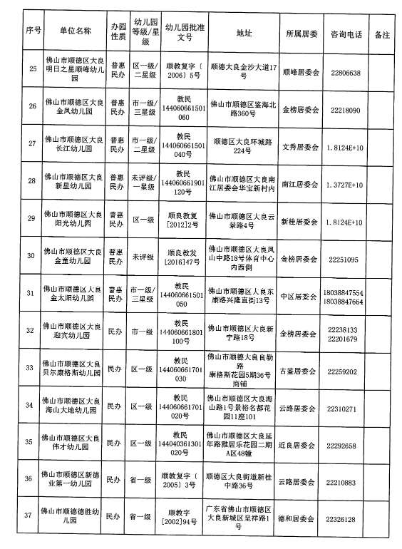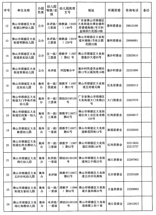 根据《顺德区教育局关于做好2022年幼儿园招生工作的通知》(顺教【2022】30号)文件精神,大良教育办现将我办主管并已取得办园资格的幼儿园名单予以公布。