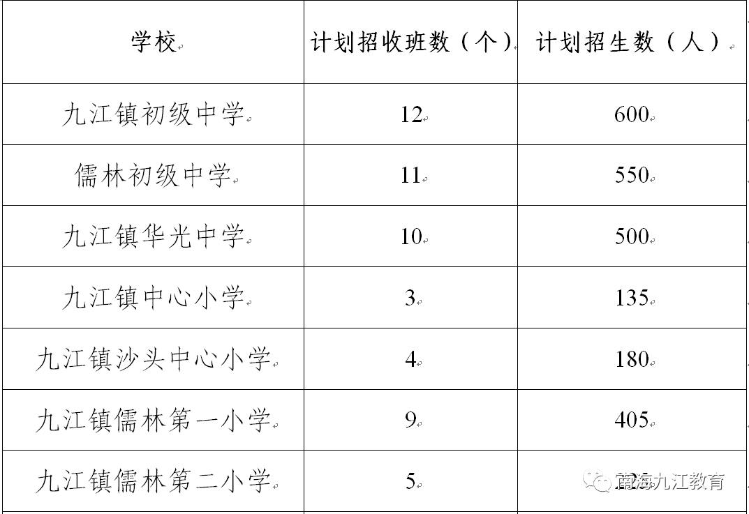 2022年九江镇义务教育阶段学校招生计划情况一览表: