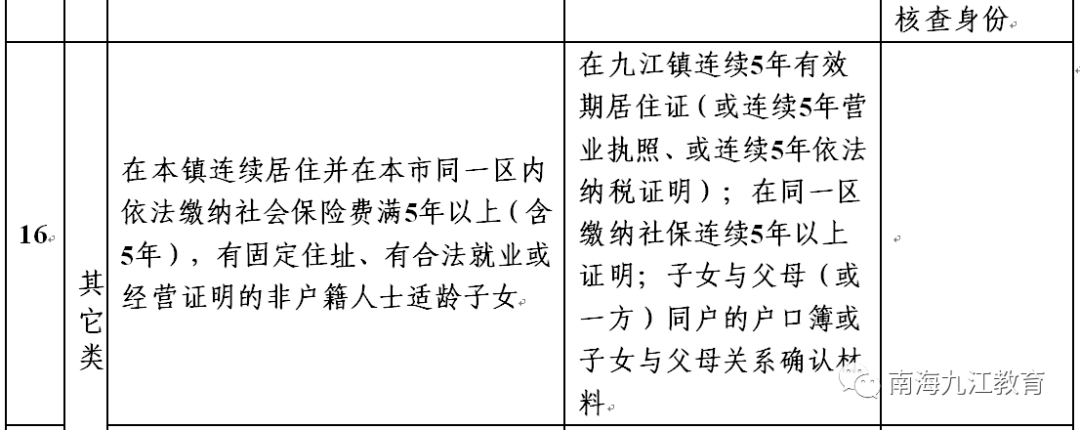2. 关于第16条“在本镇连续居住并在本市同一区内依法缴纳社会保险费满5年以上(含5年),有固定住址、有合法就业或经营证明的非户籍人士适龄子女”需提供的证明材料为: