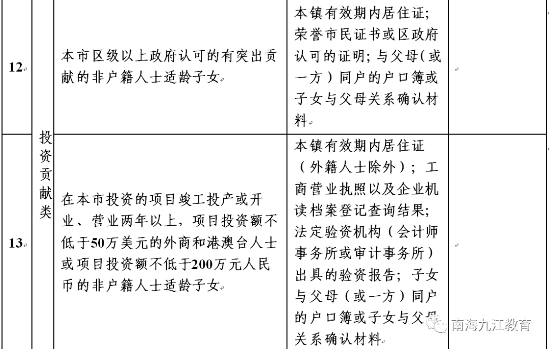 1. 关于第13条,(1)要求投资人在本镇投资的项目竣工投产或开业、营业两年以上(是指从入读报名时往前计算需满足两年以上,含两年),且至入读报名时企业登记状态显示存续(在营、开业、在册)。需提供工商营业执照以及企业机读档案登记查询结果。