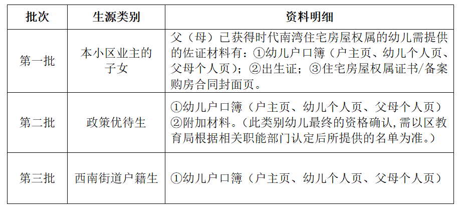 第一批:录取父(母)已获得时代南湾住宅房屋权属的幼儿。