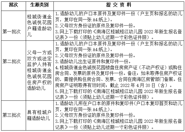 第一批次:具有户籍登记地址为桂城街道金色诚悦花园的适龄幼儿【以户口本为准,截止到2022年4月30日(含)】。