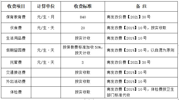 目前收费标准按照南发改价费【2021】30号、南发改费【2019】10号文件执行。鉴于幼儿园于2022年9月1日开学,开学前收费标准如有调整则按南海区发展和改革局最新核定的标准执行。代收代支费按实收取。