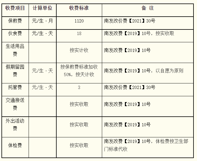 目前收费标准按照南发改价费【2021】30号、南发改费【2019】10号文件执行。鉴于幼儿园于2022年9月1日开学,开学前收费标准如有调整则按南海区发展和改革局最新核定的标准执行。代收代支费按实收取。