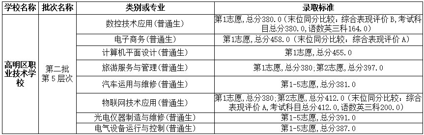 ▶高明区职业技术学校第二批录取分数和标准: