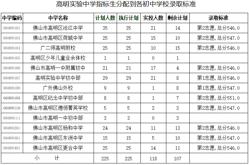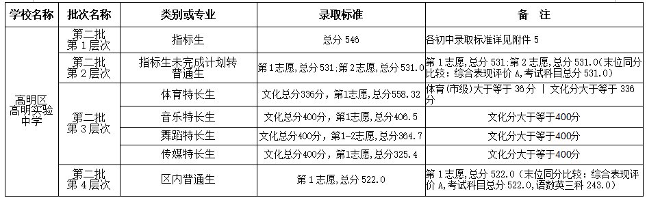 ▶高明实验中学第二批各层次录取分数和标准: