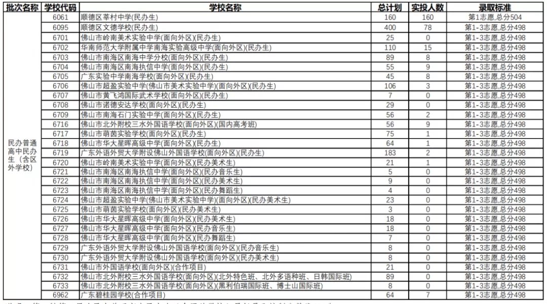 说明:第二批第五层次民办普通高中民办生(含区外学校)最低录取控制分数线498分。