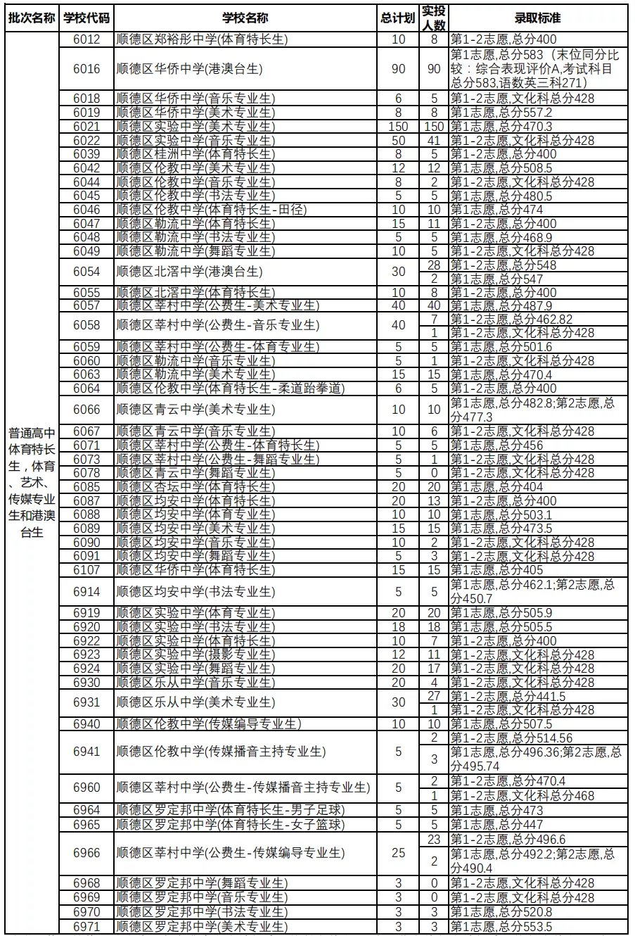 根据市的统一要求,顺德区2021年高中阶段学校招生第二批次录取采用佛山市中考录取系统进行划线投档,现将各层次最低录取控制分数线及各层次高中学校的录取标准公布如下: