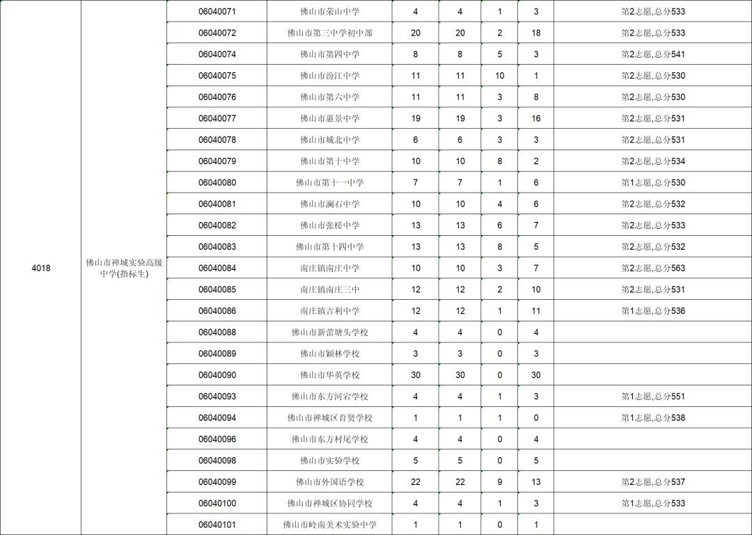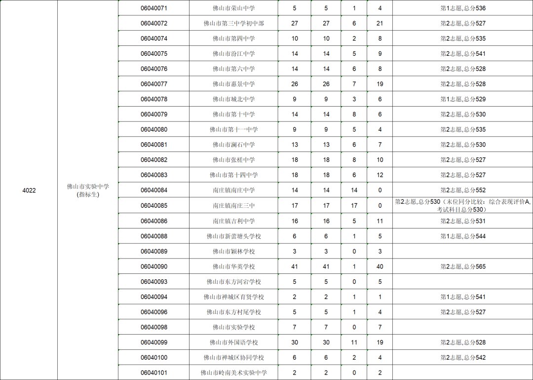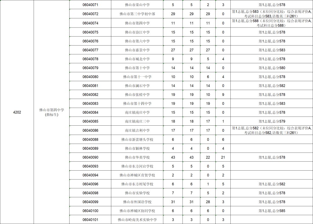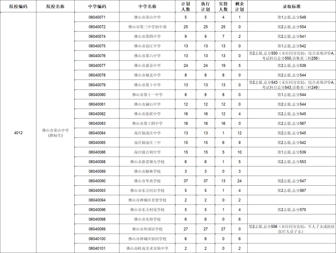 说明:各学校录取标准详见附件7《佛山市禅城区2021年高中阶段学校招生第二批第二层次指标生分配到各初中学校录取标准》