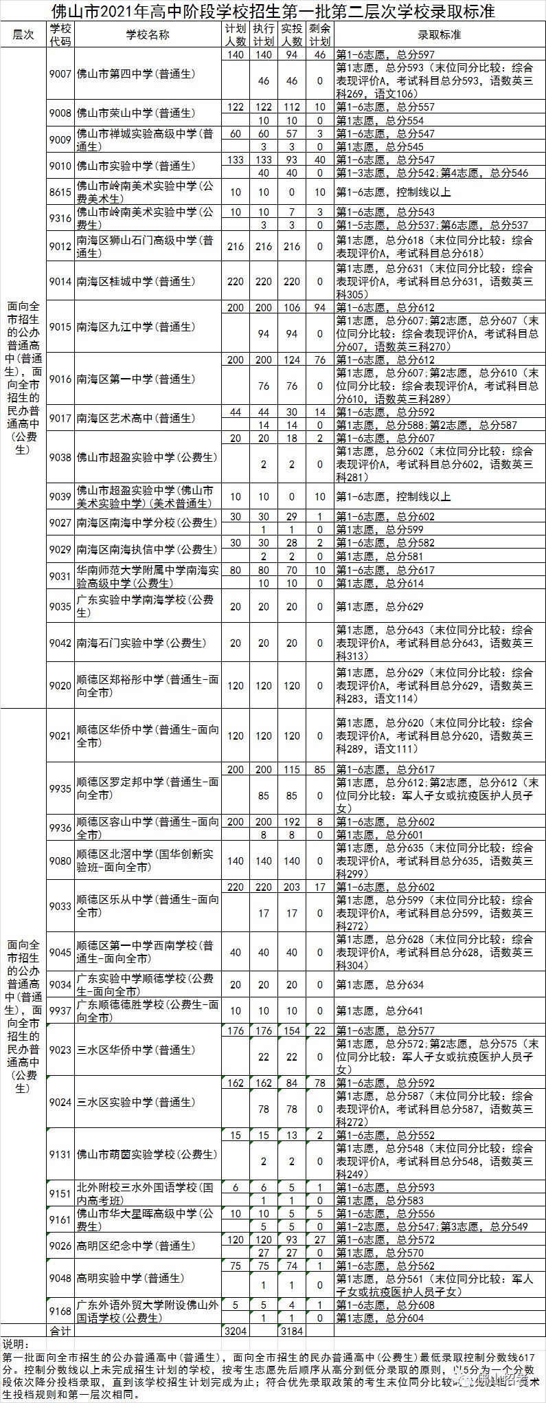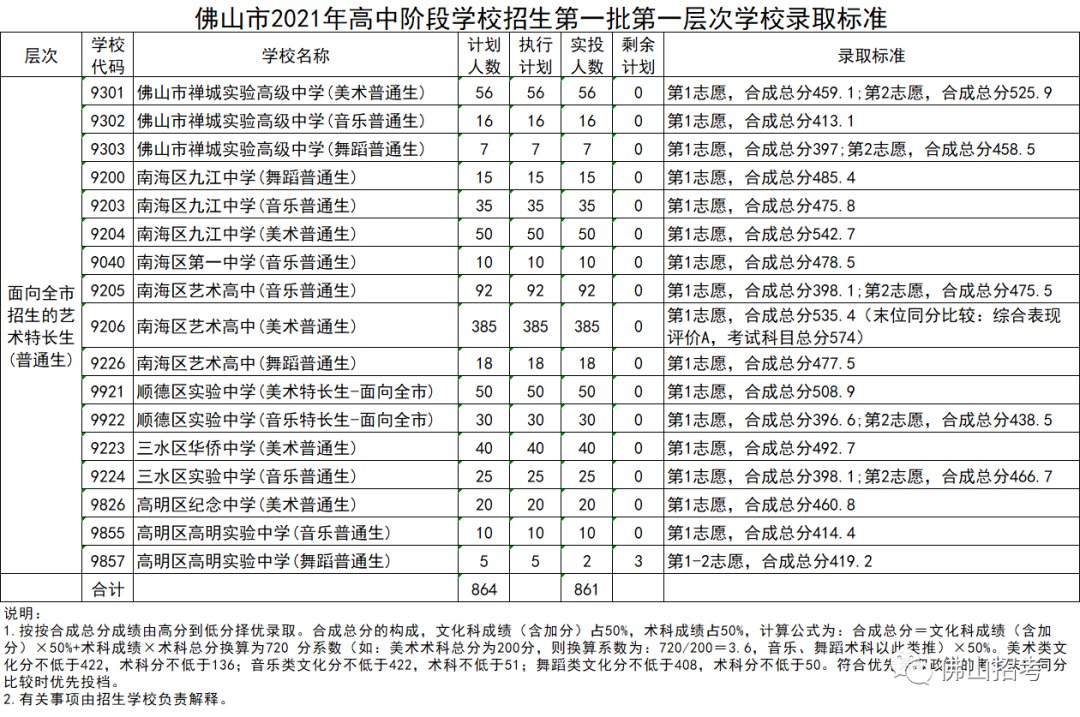 经研究,2021年佛山市高中阶段学校招生第一批录取控制分数线及学校录取标准如下: