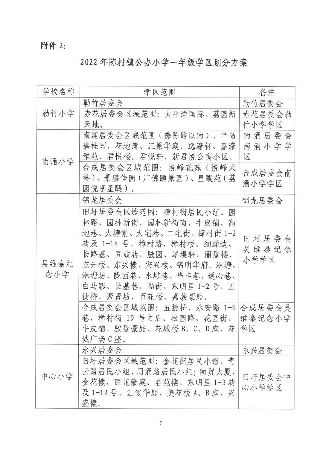 (五)录取公榜和注册。具体时间另行通知,请密切关注报名学校的微信公众号或网站,以及“陈村教育信息网”。获得录取的适龄儿童需按照学校的指引进行注册确认学位。