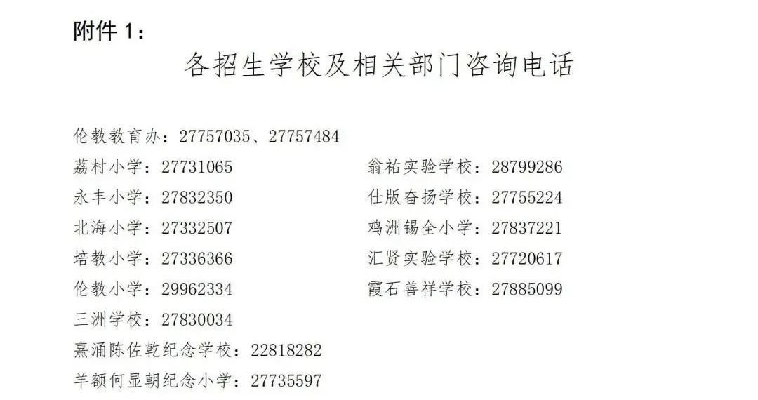 2022年顺德区伦教街道小学一年级户籍生招生方案