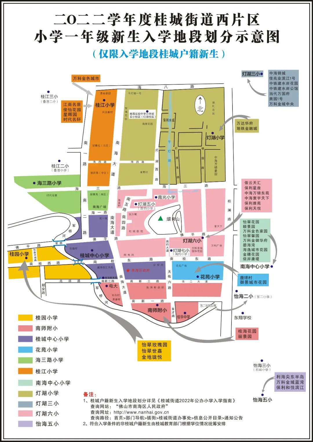 2022年南海区桂城街道西片区小学一年级新生入学地段划分示意图: