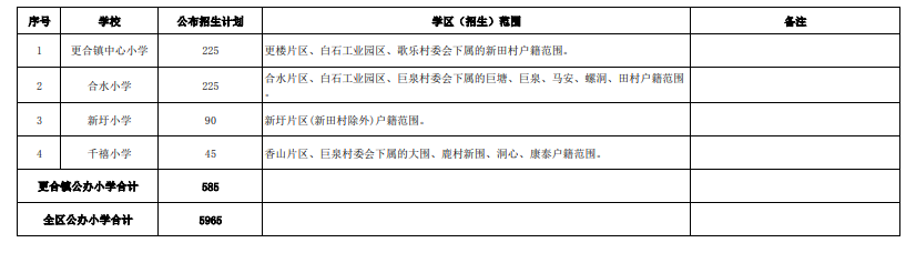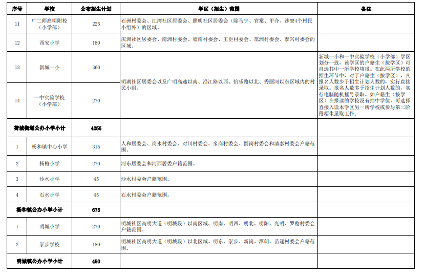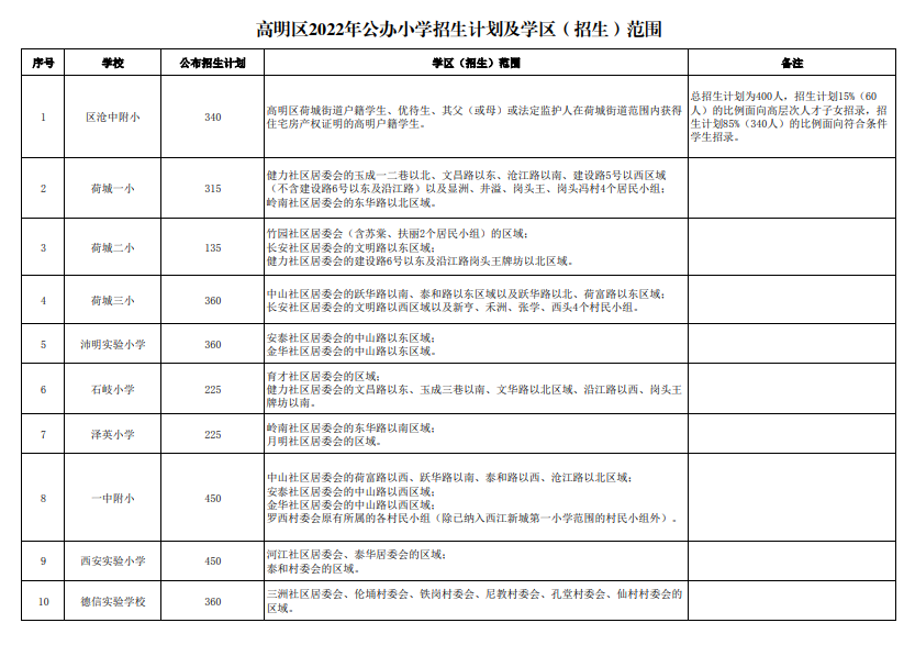 高明区2022年公办小学招生计划及学区范围:
