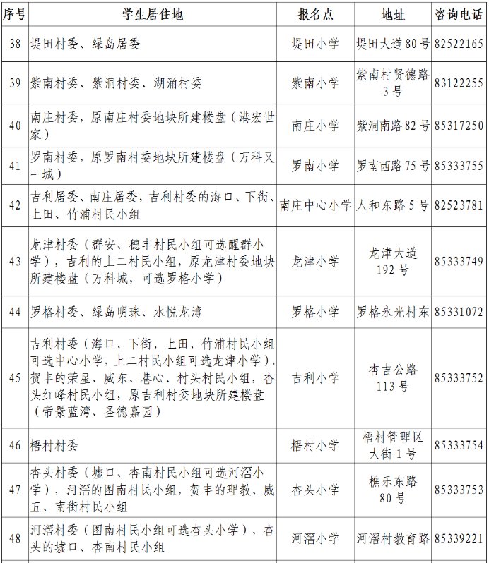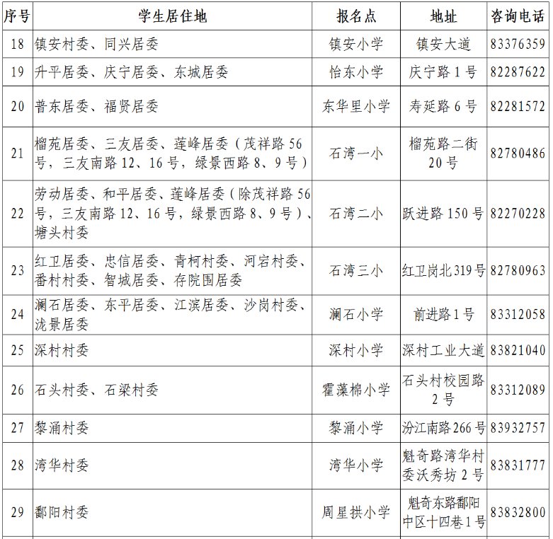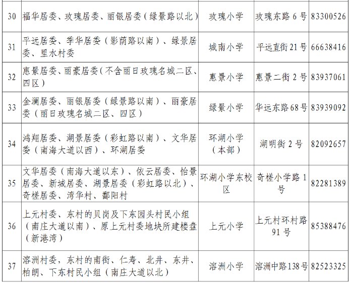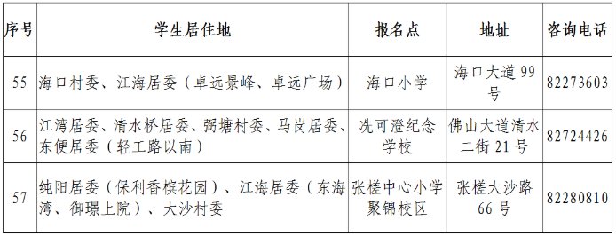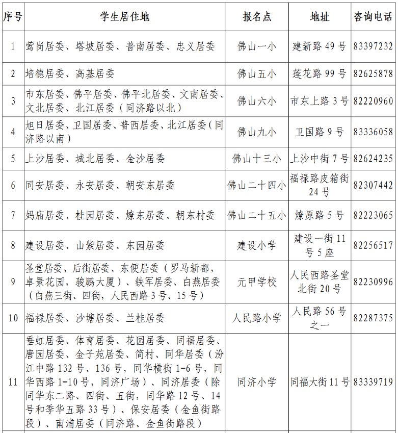 禅城区2021年公办小学户籍生报名确认点(地址+电话)