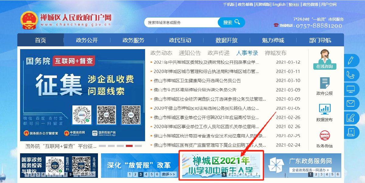 2022年禅城区公办小学电脑端报名指引: