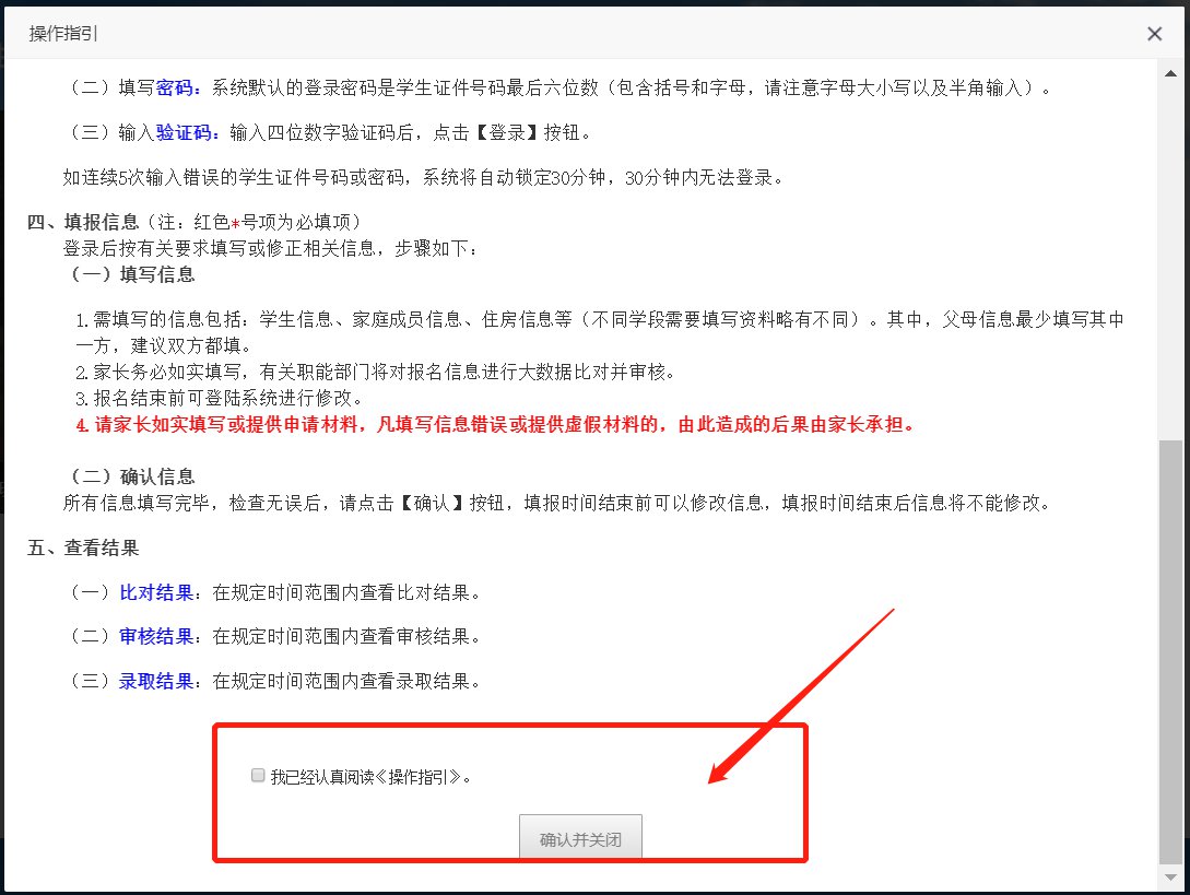 ①政策性借读生网上信息比对结果全部匹配的,适龄儿童家长须于4月7日9:00至4月8日17:00前登录招生系统完成网上报名确认。