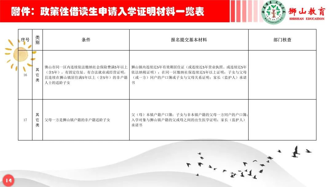 政策性借读生:符合政策性借读生条件的非狮山镇户籍适龄儿童少年