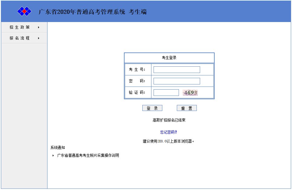 报名系统:广东省普通高考管理系统【未到报名时间系统不开放】